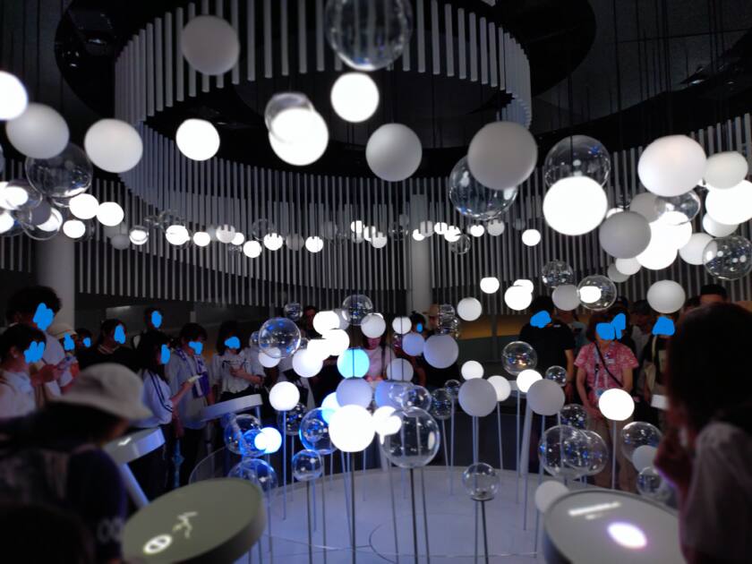 そしてシンガポールについての説明なども聞き、最後の方のエリアがこんな感じで、なにができるかというと、目の前にあるパネルに自分の願いや目標を書いて空に掲げるエリアであり、その体験というより丸の電球やガラスが上からのライトアップで様々な色に変化しすごくきれいでした(*´∀`*)