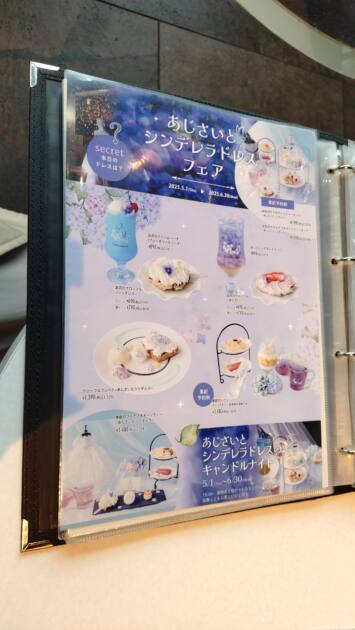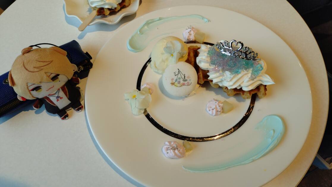 今回私は、5月の季節限定メニューだった「クロッフルプレート~あじさいとシンデレラ~」を注文しました!見た目がすごくかわいくて何枚も写真を撮ってしまいました(・ω・;)