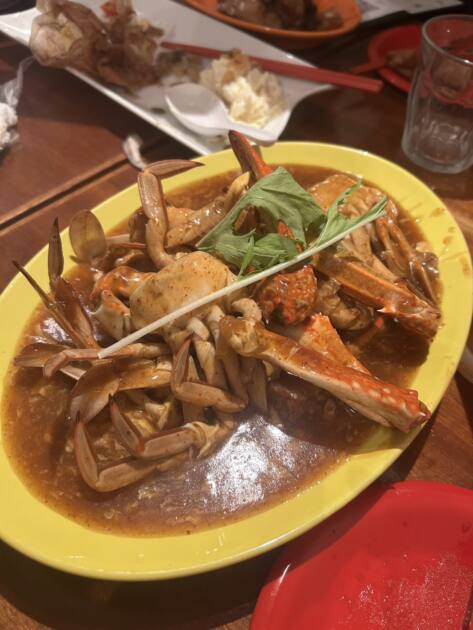 私は辛いのが得意ではないので、カニのチリソースがとても辛く感じました(^^)