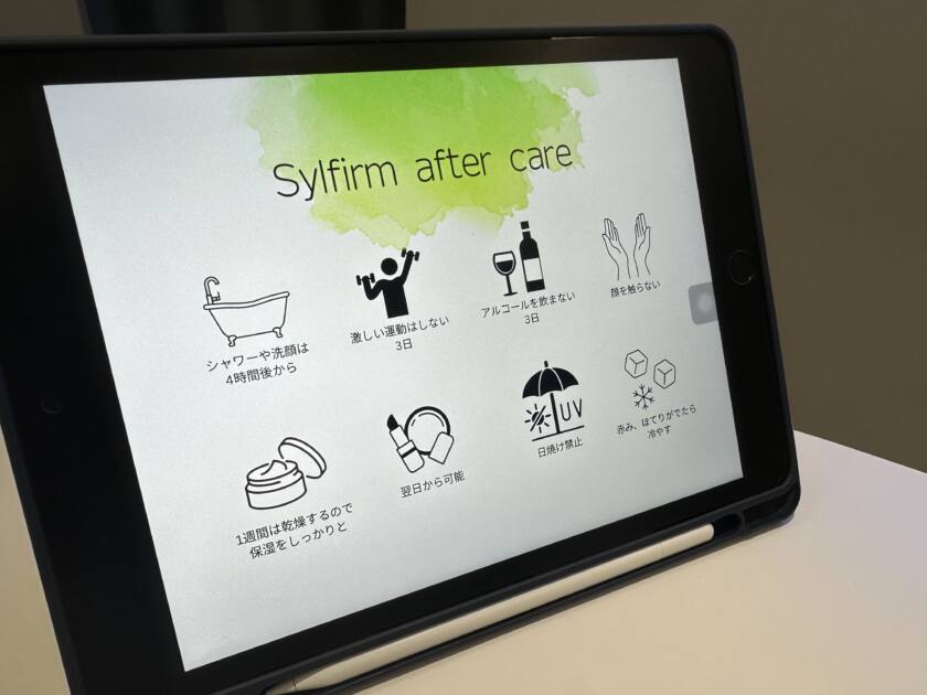 術後の注意事項はこんな感じ。すごく丁寧なクリニックなので紹介してくれた椎野社長に感謝です(´∀`*)