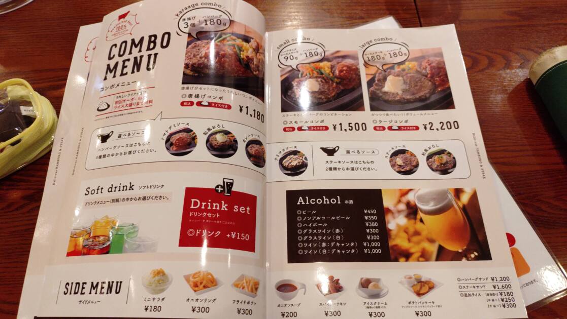 メニューはこんな感じで、ハンバーグやステーキのサイドメニューも結構種類が豊富にありいいなと感じました!