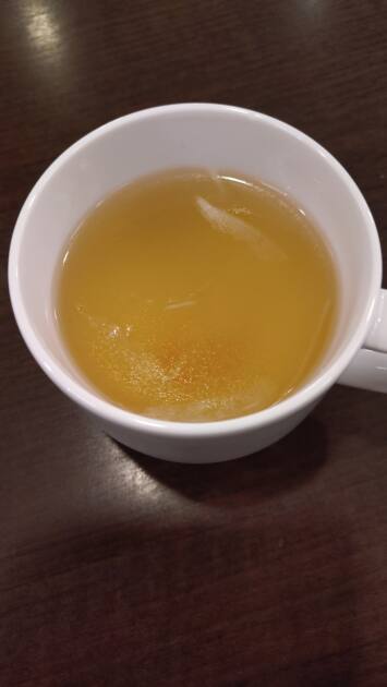 今回私が注文したものは、「キノコと揚げナスのトマトソース」です!一枚目は注文したときについてくるスープで普段であればコーンスープにアップグレードしますが、今回は普通のコンソメスープで注文しました。味がやさしくホッとするような気持になりました。