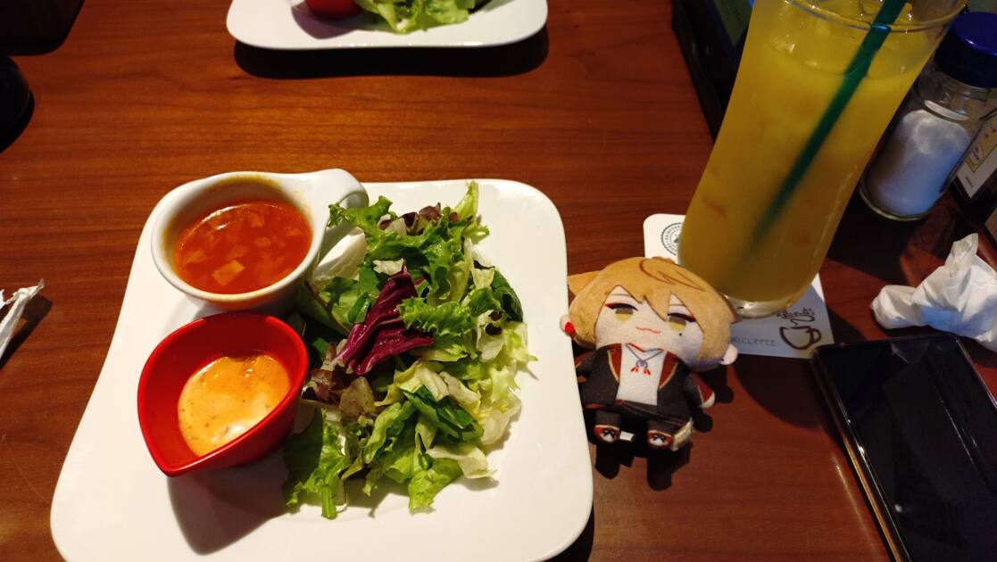 こちら注文した際にセットでついてきたサラダとオレンジジュースです!