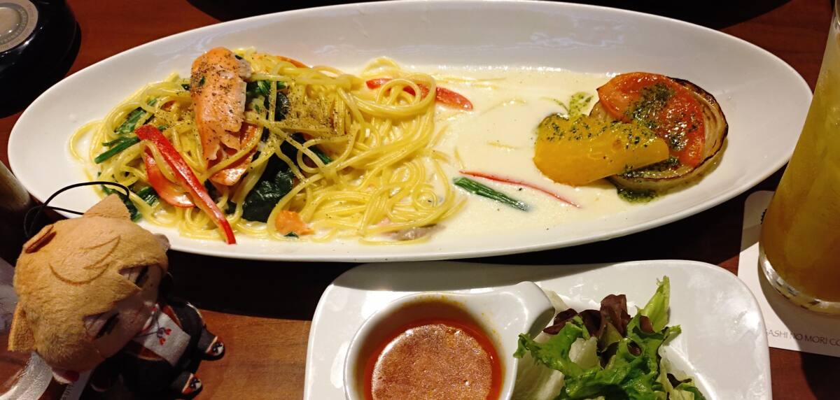 そしてメインで頼んだパスタは(メニュー名を忘れてしまいました…)大きめのサーモンであったり玉ねぎ、パプリカがしっかり入っており、おいしかったです(๑>ڡ<๑)