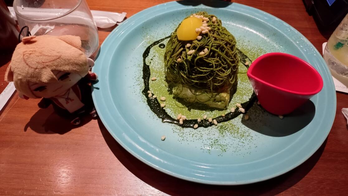 これはデザートで頼んだ「絞り立て抹茶モンブランパンケーキ」で、パンケーキ自体はすごくふわふわ食感でモンブラン部分はしっかりと抹茶の味がしました(*,,•ᴗ•,,)