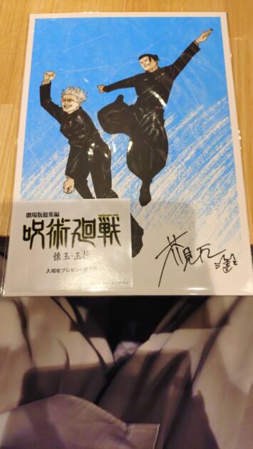またこれは第一週目の来場者特典で、原作者である芥見下々先生のサイン付き、芥見先生描きおろしイラストのビジュアルボードです✨