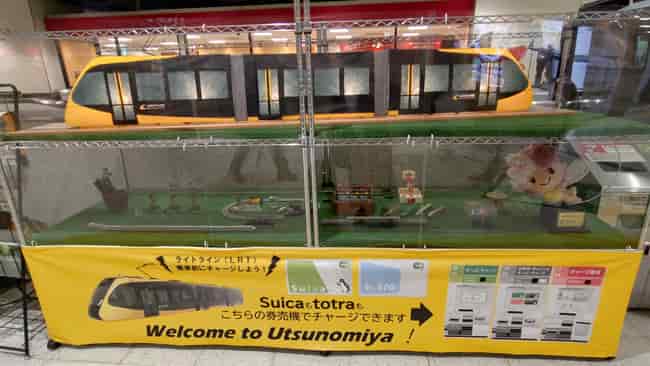 こちらが『宇都宮ライトレール』の再現がされた模型です!宇都宮ライトレールは、2023年に開設された路面電車で、雷が多い宇都宮の「雷都」にちなんで、稲妻をモチーフにして作られたそうです⚡