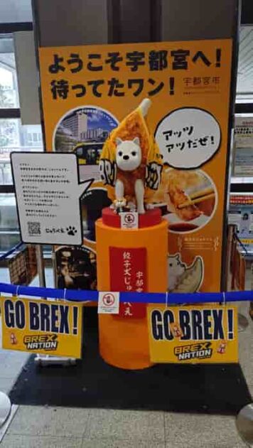 右の写真は、宇都宮のブランドプロモーションキャラクターである「餃子犬じゅうべえ」という子で、程良い焼き色の餃子をまとった犬の設定で、餃子のじゅうじゅう焼ける音と匂いで食べ頃が分かる鋭い耳と鼻が自慢とされているそうです!