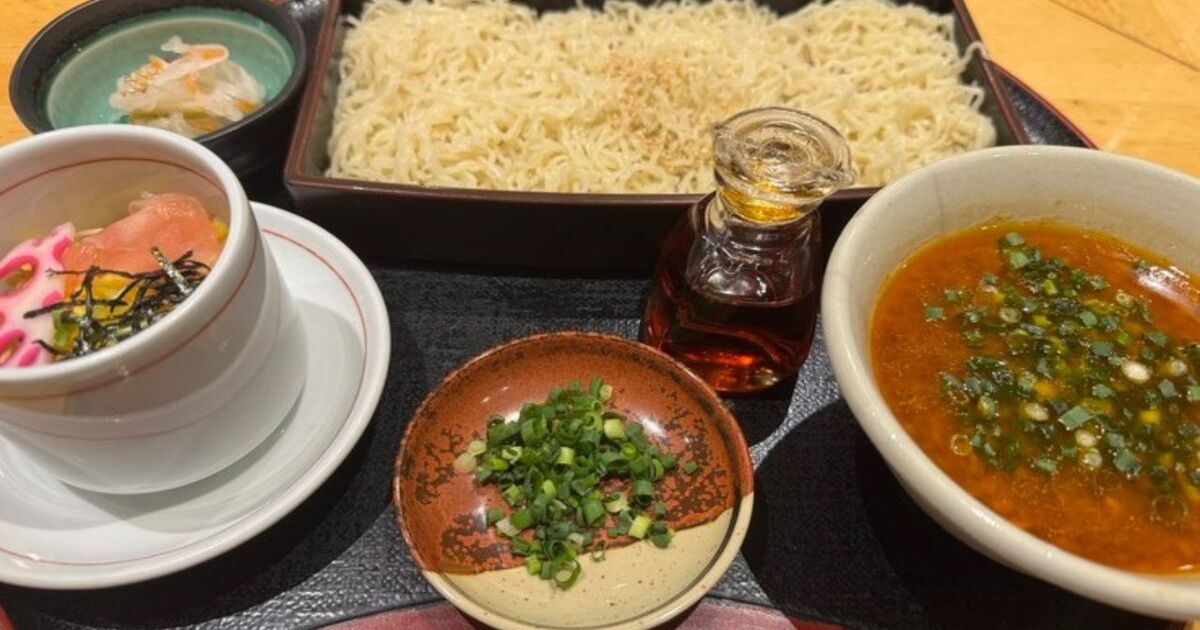 『しゃう麺』ってなんだろう?そばなのかな?と思い、『黒豚ピリ辛つけ麺セット』を注文してみました!