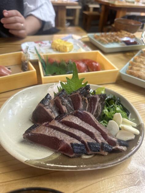 ひろめ市場 投稿者:社員U.S(女性) 投稿日:2025年12月1日 カテゴリー:出張 今日はみんなでひろめ市場に行ってきました〜🐟 魚以外にもカレー屋さんなどお肉系など様々なお店が一緒になっている市場でとてもおもしろかったです。 お寿司と餃子🍣お酒が進みました∩^ω^∩ ラーメンが1番美味しかったです〜🍜 塩とタレの鰹です!!!!分厚くて食べ応えがあります!!! 地酒屋🍶 高知城