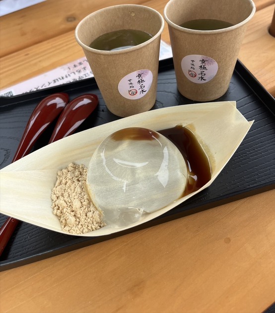 さっそくこの『京極の水』が使われた名物水まんじゅうを注文しました。売り切れることもあるそうなので注意です!早めに行きましょう。