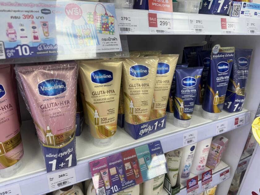 ブーツ 投稿者:社員U.S(女性) 投稿日:2026年1月8日 カテゴリー:出張 タイの至る所にあるドラッグストア! ブーツに行ってきました。 ブーツといったらコチラのお土産セットコーナー! ポーチもしっかりしていて、中身もトラベルサイズで使えそうなものがたくさん入っているものです✨ でっかすぎる見たこともないサイズのニベアがありました。笑 左のボディークリームは肌が白くなると言われているクリームです^_^ サブウェイ 海外歯磨き粉