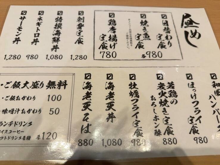 北海道の海の幸を活かした定食・丼が豊富に揃っています。値段もリーズナブルです…!