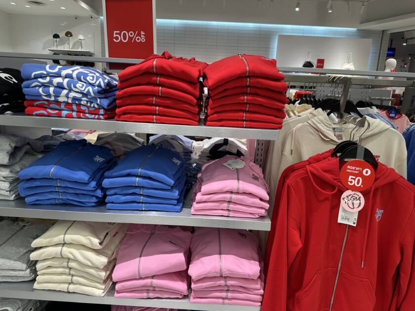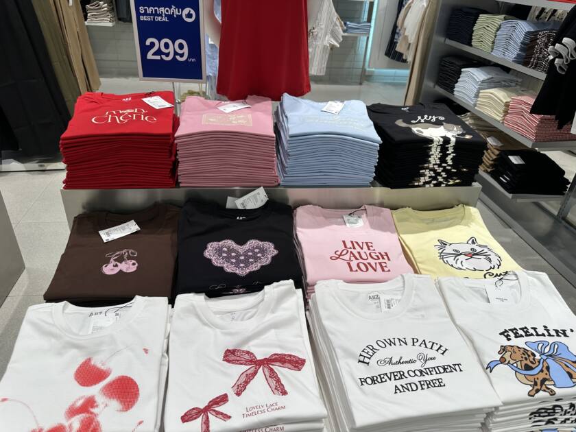 AIIZ 投稿者:社員U.S(女性) 投稿日:2026年2月13日 カテゴリー:出張 タイの服屋さん! 意外とシンプルなものがあるのでたまに可愛いのがあります🩷 なので今回もチェック!! チャイナ服みたいなのが多い〜〜 とっても涼しそうでかわいいですね! ジャージが安くなってた!!!!!!あとTシャツも✨ ちょだとラブリーな感じでかわいいですね🎀 ジャージの色はちょっと派手すぎるかな…? H&M ラブブ