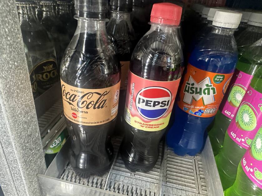 タイコーラ🇹🇭 投稿者:社員U.S(女性) 投稿日:2026年2月13日 カテゴリー:出張 タイのコーラは種類がたくさんあって、日本では売られていないフレーバーもあります!! シナモンフレーバー?のような味がしたコーラにライムにストロベリー🍓 ピンクのペプシって見たことがないかわいい🩷 ペットボトルだけではなく、缶のコーラもあるので少し味見して見たい方には缶コーラがおすすめですよ(^^) セブンイレブン サンリオスイーツ🍰