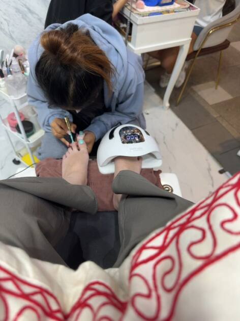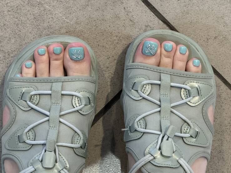 タイでは暑いのでサンダルを履いていたのですが、フットネイルをしたことでさらに可愛くなって嬉しいです😊水色のサンダルに合う色を選んで正解でした!