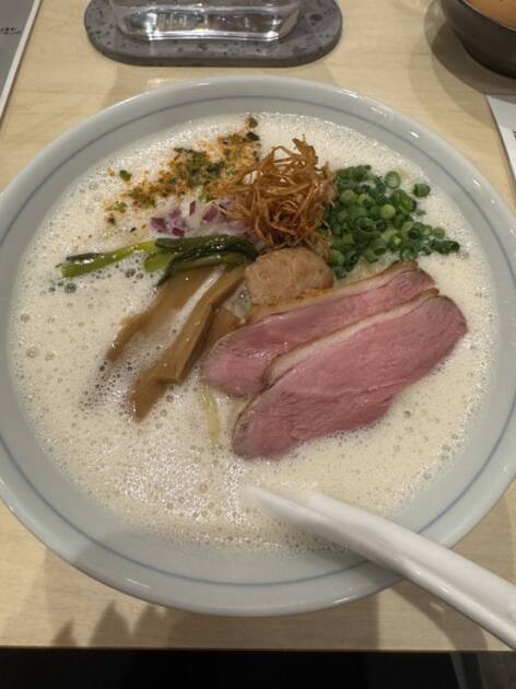 スープは乳化された白湯スープです!鴨出汁をしっかりと味わえる濃厚なスープでした。