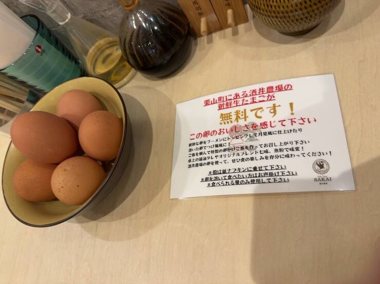 卓上の卵はなんと無料!このほかにも醤油ダレ、オリジナルブレンド七味、魚粉、お酢があり、味変がたくさん楽しめそうでした!
