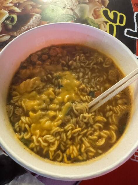 インスタントラーメンをセルフで作る機械、流行っていましたがまだ未体験でした。ソーセージ・ネギ・チーズ・牛乳(私は選びませんでしたが)のトッピングをカスタムすることができます。
