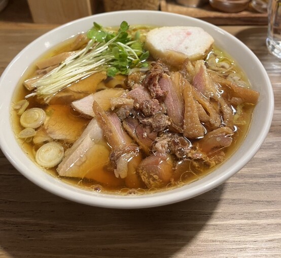 以前は限定メニューを頼んでしまったので、看板メニューの『軍鶏肉そば 醤油』を注文しました!