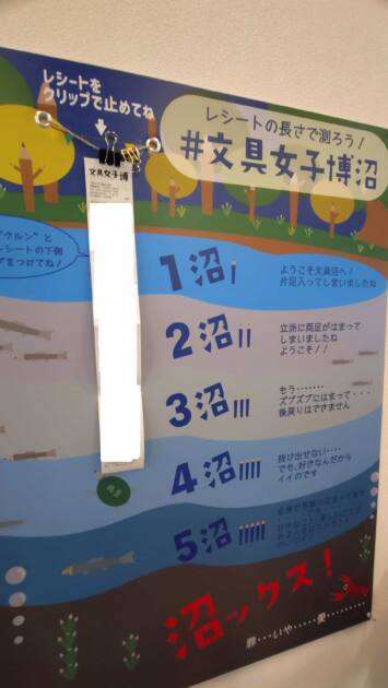 購入したあとのレシートの長さでどこまで文具沼にはまっているかを測るものがあり、実際に調べてみると『4沼』まではまっていました。