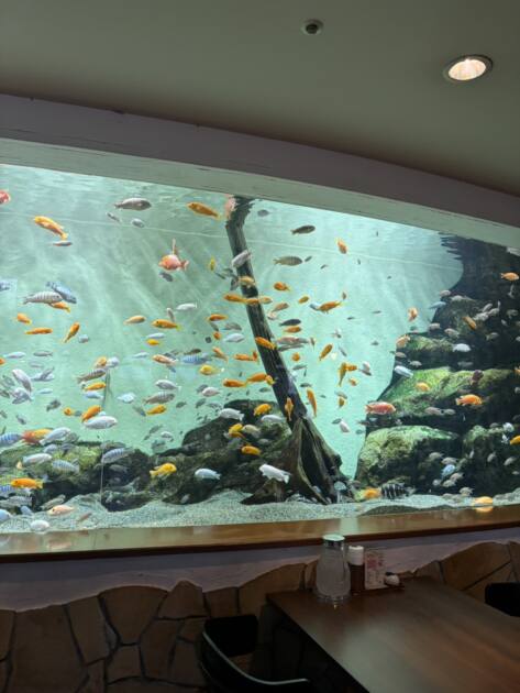 私は、座ることができませんでしたが水槽の隣でご飯を頂ける席もありました!!