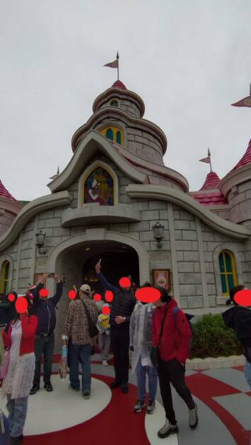 このエリアの入り口がピーチ城になっており、扉にクッパの落書きがされていたり、建物の再現がやっぱりすごいなと感じました。