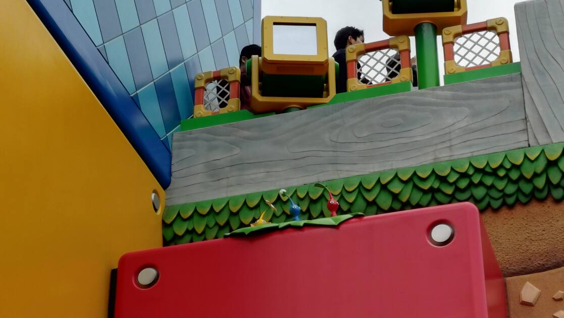 このエリアではマリオが主だったのですが、エリアの片隅にピクミンがいてました(´∀`*)ほかの遊園地でいう隠れ〇ッキー的な要素なのかなと思いつつ、かわいくてついつい探してしまいました。