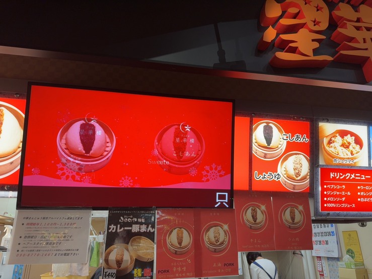 看板メニューは、店頭販売されている肉まんやあんまんなどの中華まんじゅうなのは勿論のこと、肉しゅうまいや期間限定の中華まんじゅうなどもありました!