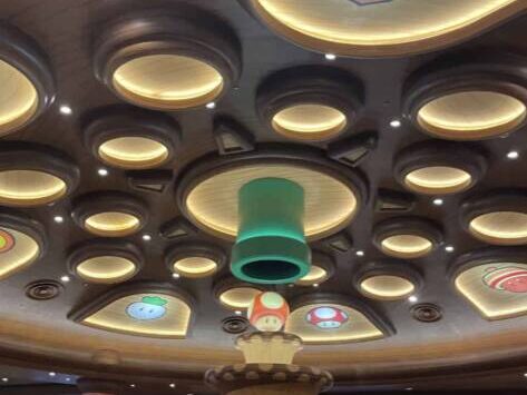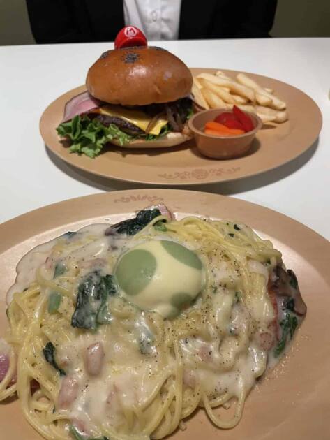 お昼は、前々から気になっていたニンテンドーワールド内の「キノピオカフェ」に入りました。店内はゲームの世界がそのまま再現されていて、どこを見ても写真に残したくなるような雰囲気。私はヨッシースパゲティを注文しました。見た目は控えめな量に見えるのに、実際に食べてみるとソースがしっかり濃厚で、食べ進めるほど満足感が増していく一皿でした。真ん中に乗っているヨッシーのたまご風のトッピングもかわいく、料理自体がアトラクションの一部のようで、食べていて楽しかったです。