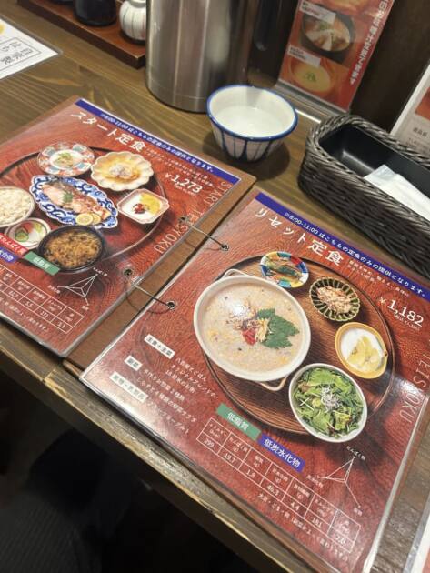 まず食堂のような温かみのある店内が迎え入れてくれます。席に着くと店員さんが早速白湯を持ってきてくださいました。普段からお腹が弱い私にとっては嬉しいです。 11時までは2種類の定食のみ提供しているそうです。