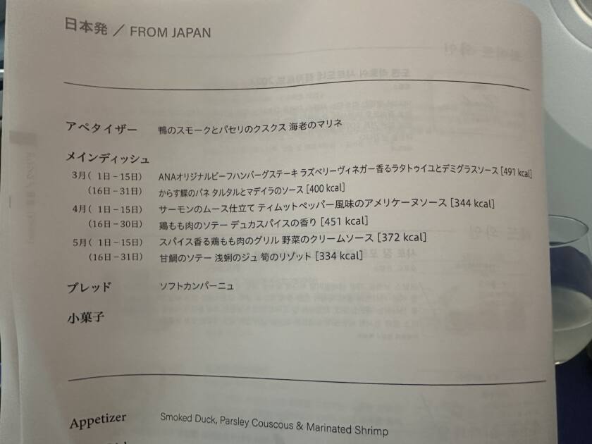出発してすぐに機内食がせっせと運ばれてきます。笑