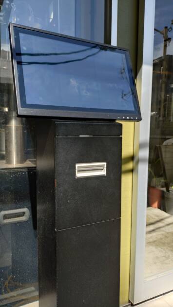 まずこのカフェに到着したら券売機で発券し順番待ちをします。この時、店前で待機でも離れたところで待機でもどちらでも対応可能とのこと。離れた場合、スマホなどに順番が来た際連絡が来るそうです。