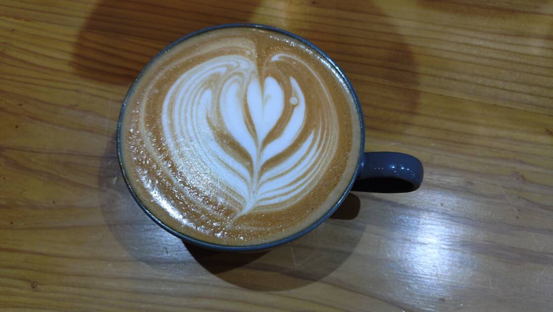 こちらは「ホワイトモカ(HOT)」です!ラテアートがされていてすごくかわいく、飲むのがもったいなく感じました。