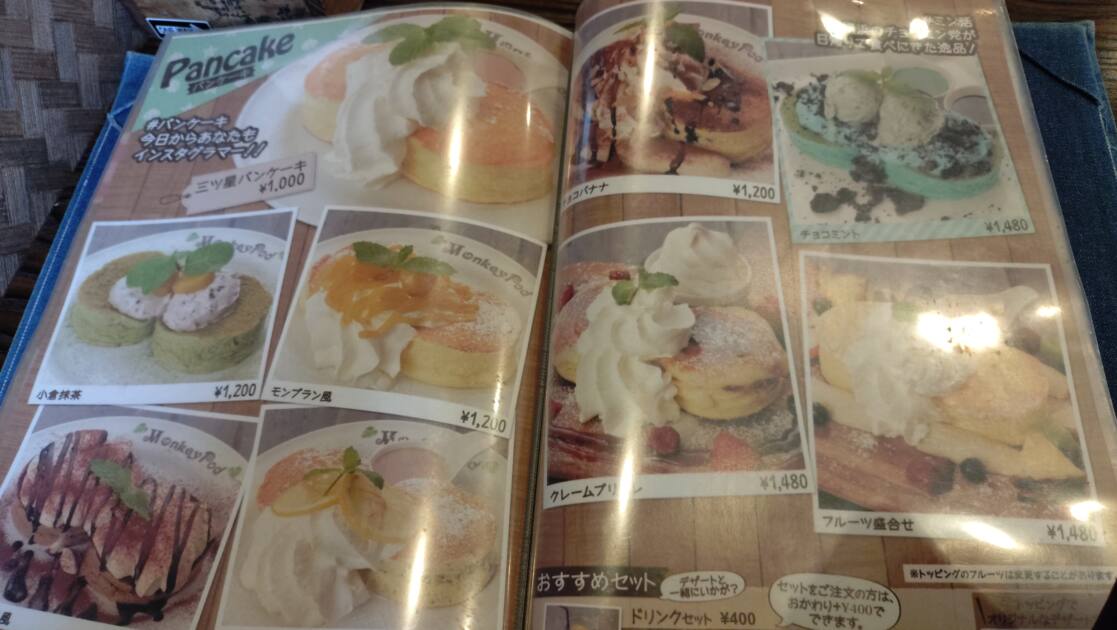 メニュー表はこれ以外のページもありますが、パンケーキだけでも9種類ありどれにしようか悩んでしまいます;( ;•ω•ก)