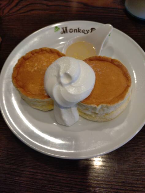 三ツ星パンケーキは、一番シンプルのパンケーキでホイップクリームのと一緒に食べつつ横についていたはちみつをホットケーキにかけて食べるとおいしかったです!